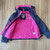 Leichte Jacke mit Kapuze für Sportaktivität und Freizeit. Animalprint in Grau und Schwarz, neonpinke Schnur und Details. Lockere Passform, Rückenlänge ca. 61cm, sehr guter, gebrauchter Zustand.